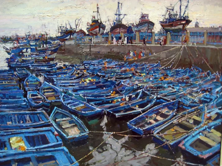 Watch a Soviet-trained master painter transform memories of a Moroccan port into a complex multi-figure composition.